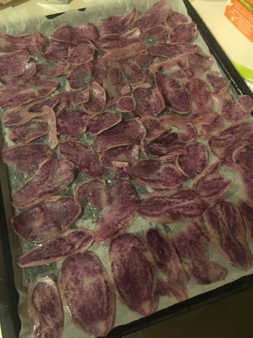 INGREDIENTI Chips di patate viola: 4 Vitelotte, olio di semi, sale